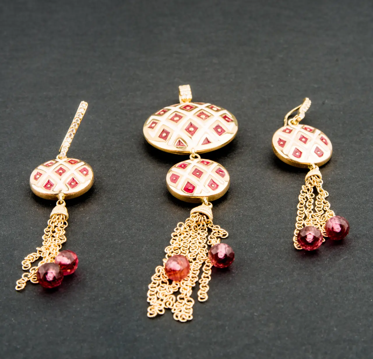Original conjunto de joyas con piezas únicas de oro amarillo de 18 quilates.