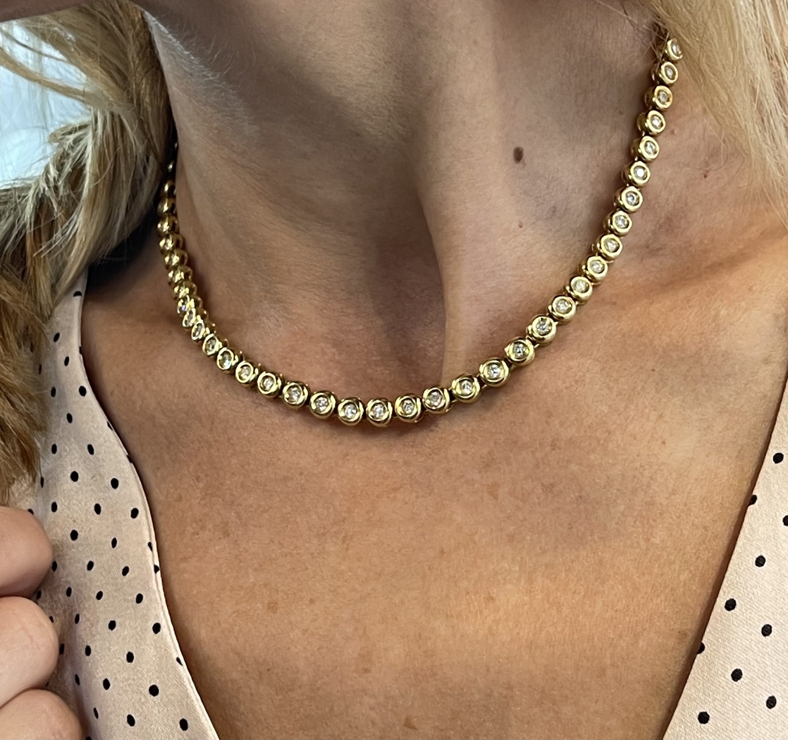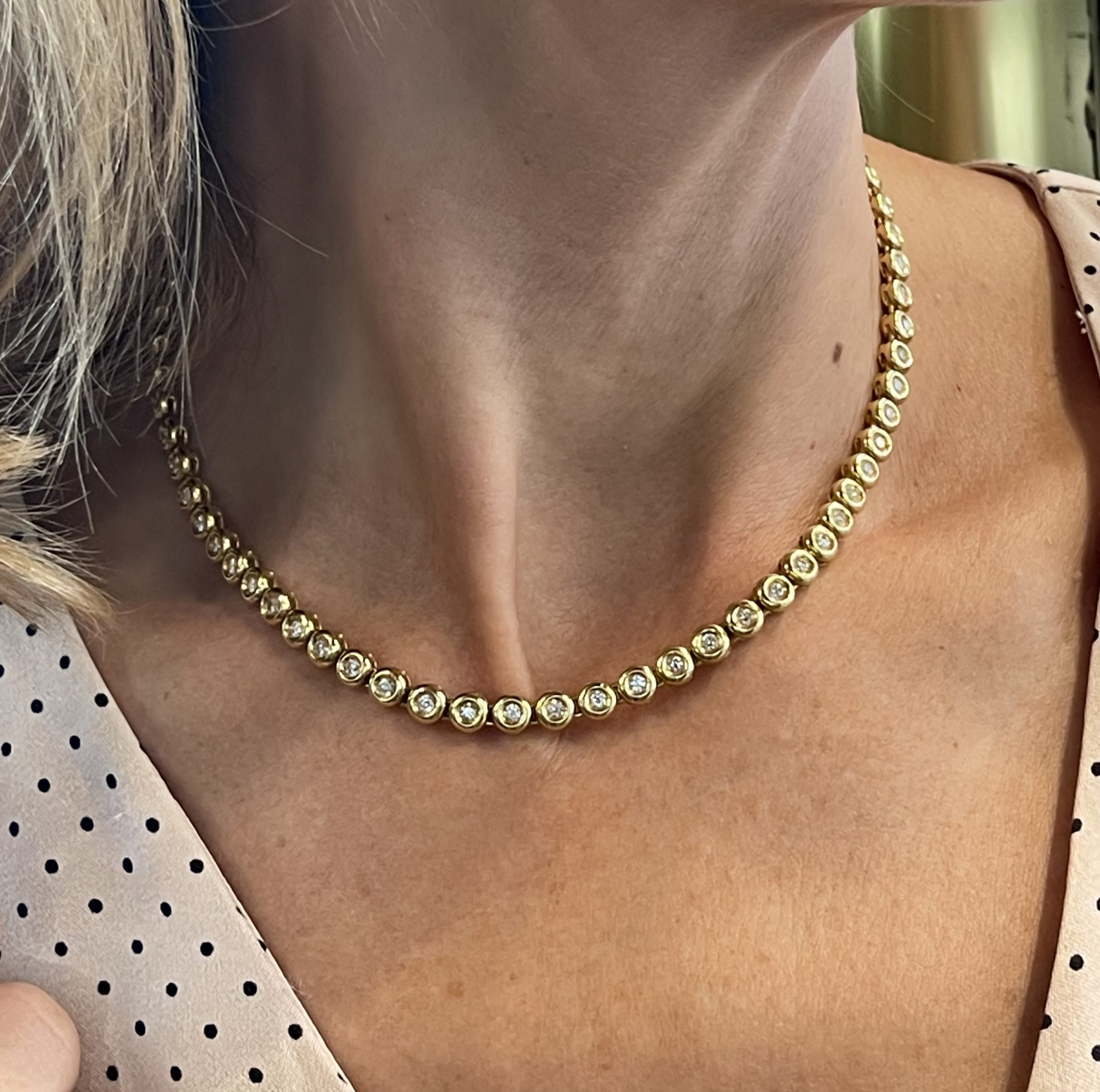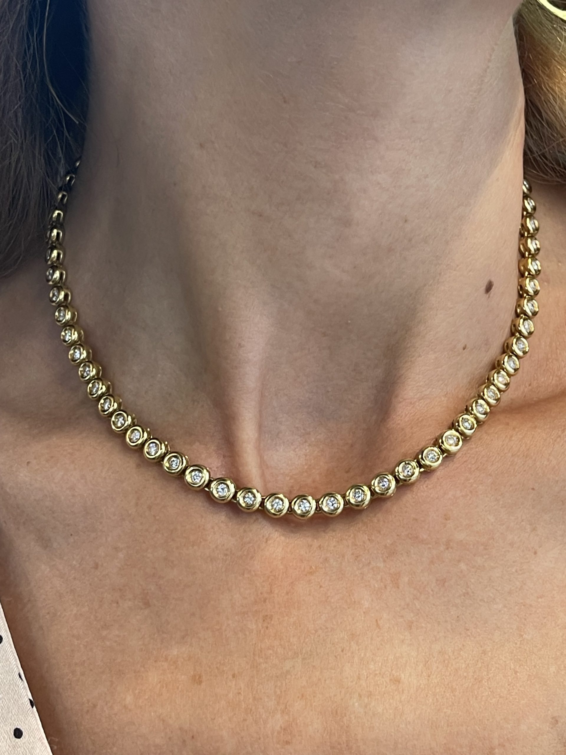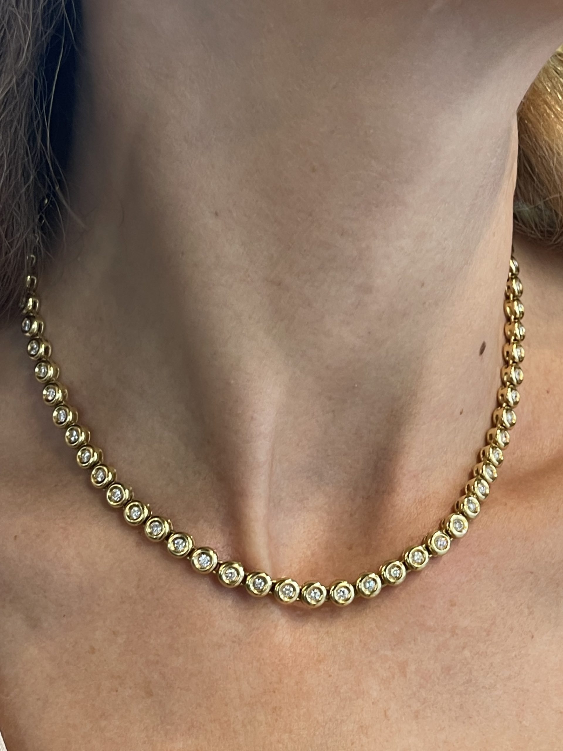 Gargantilla Riviera de oro 18Kst con diamantes naturales talla redonda de 6,7ct,