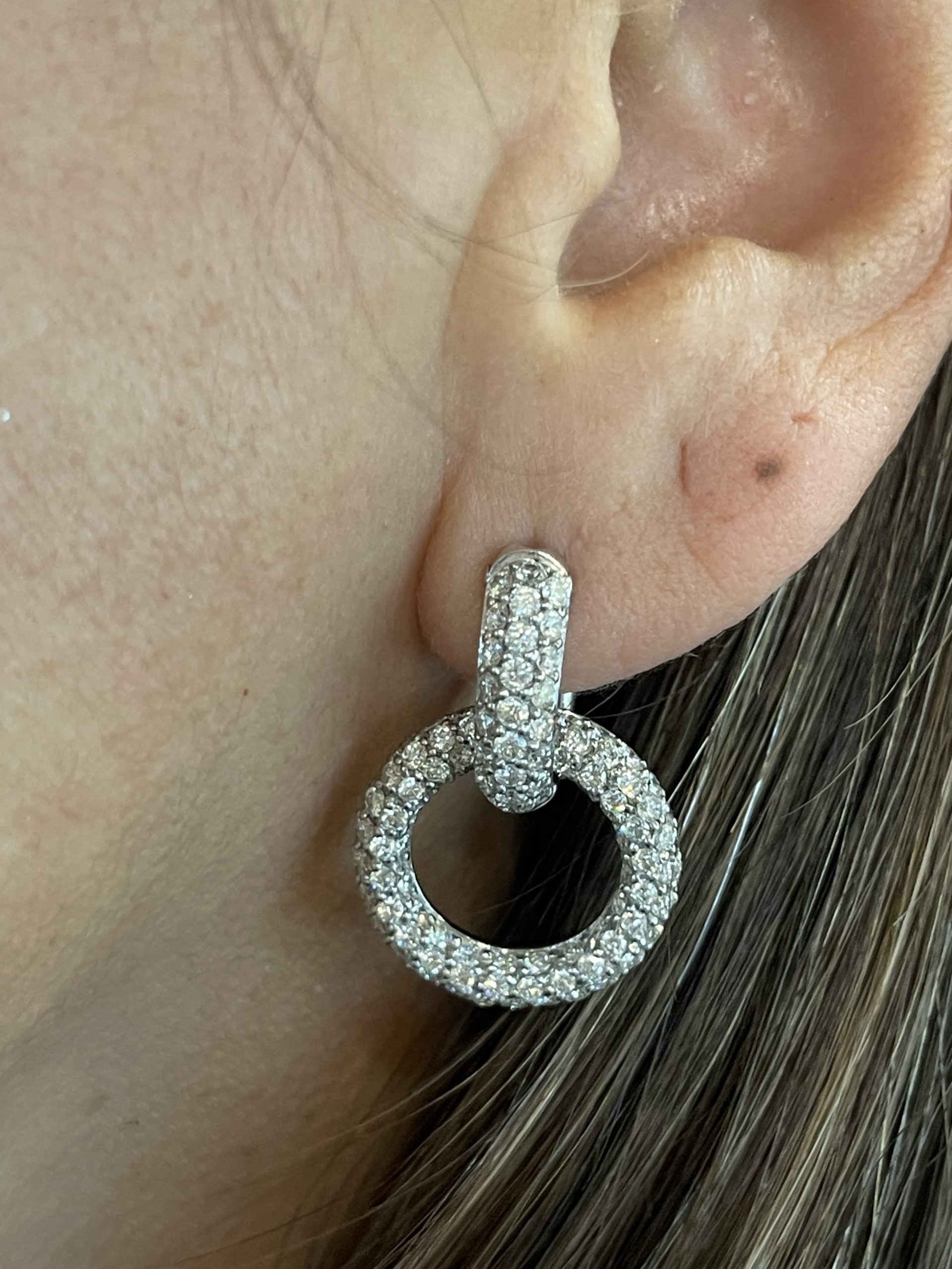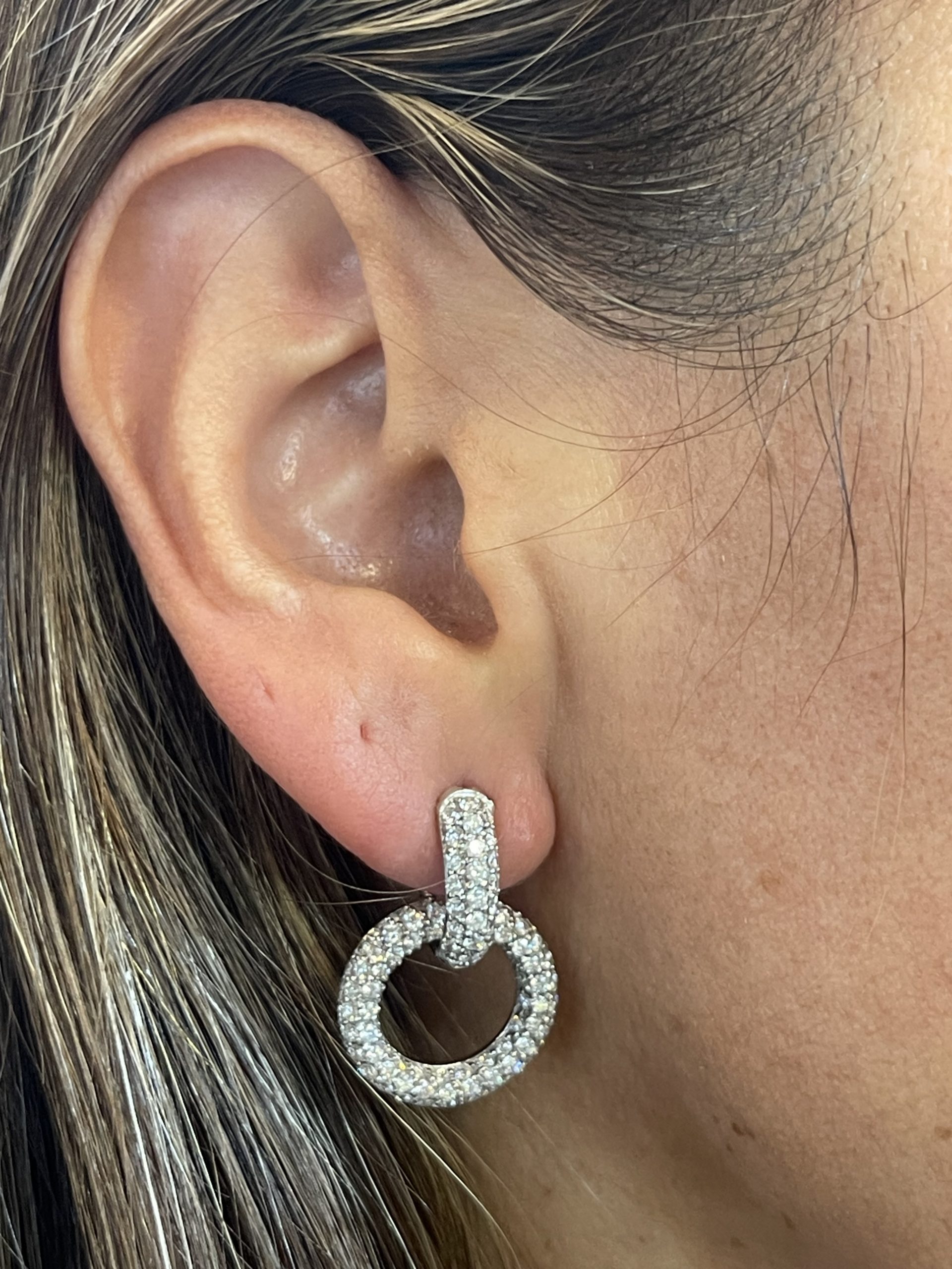 Preciosos pendientes desmontables, de oro blanco 18kts y diamante talla brillante, se puede convertir en un aros sencillos o un oros dobles.
