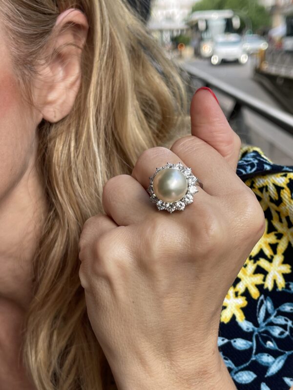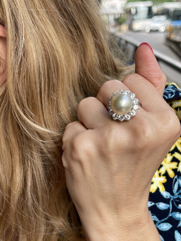 Anillo de perla Australiana y Diamantes