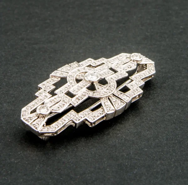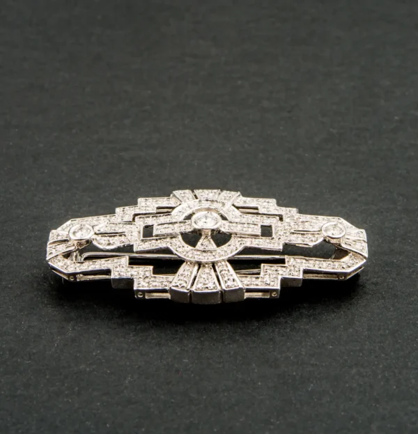 Broche antiguo de oro blanco con brillantes