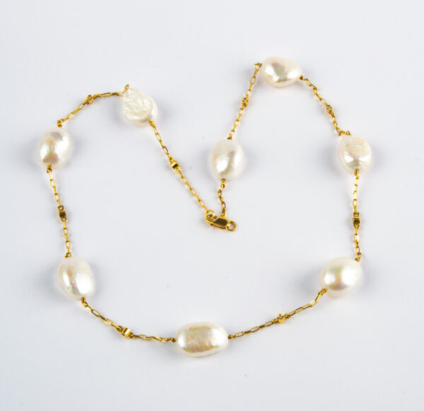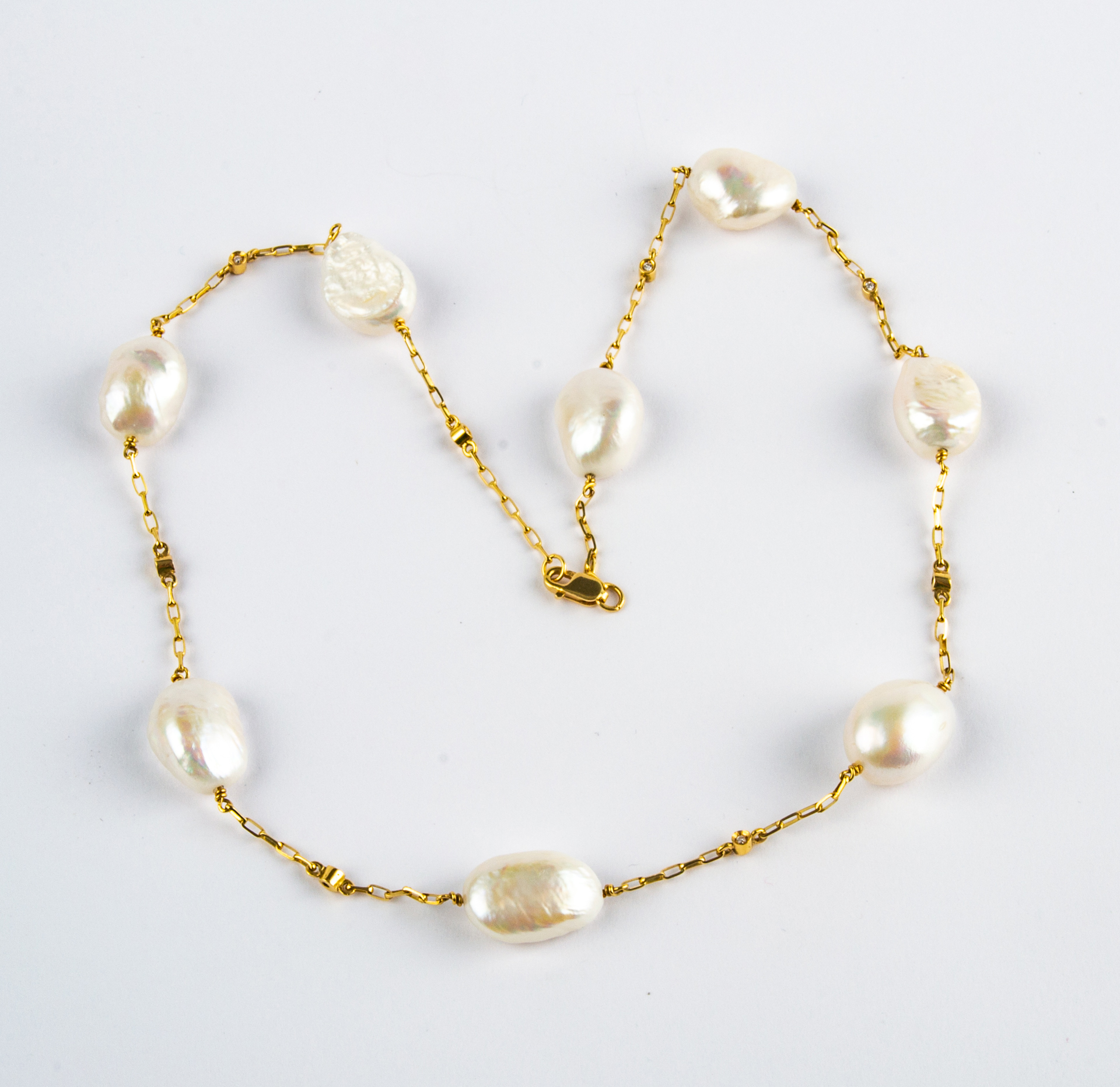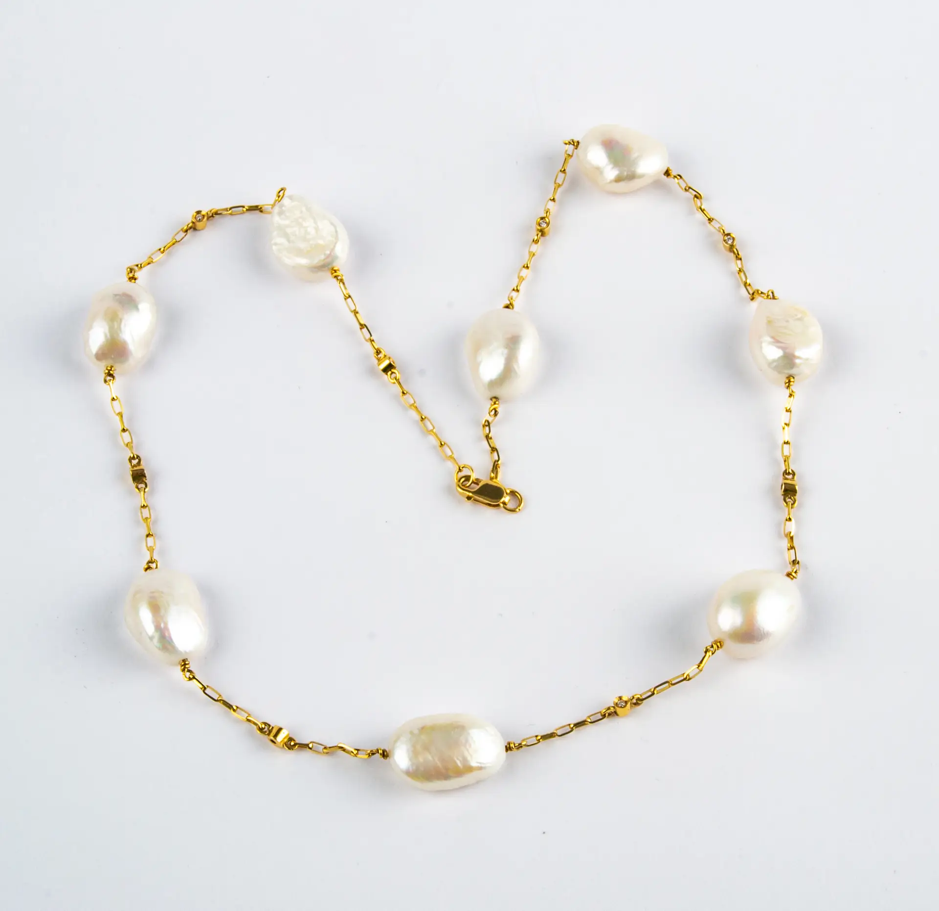 Collar de perlas y diamantes en oro amarillo