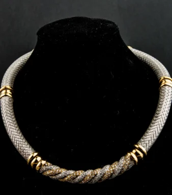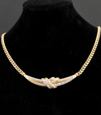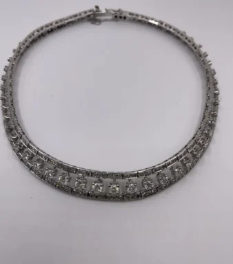 Gargantilla con rosetón central oro blanco con brillantes