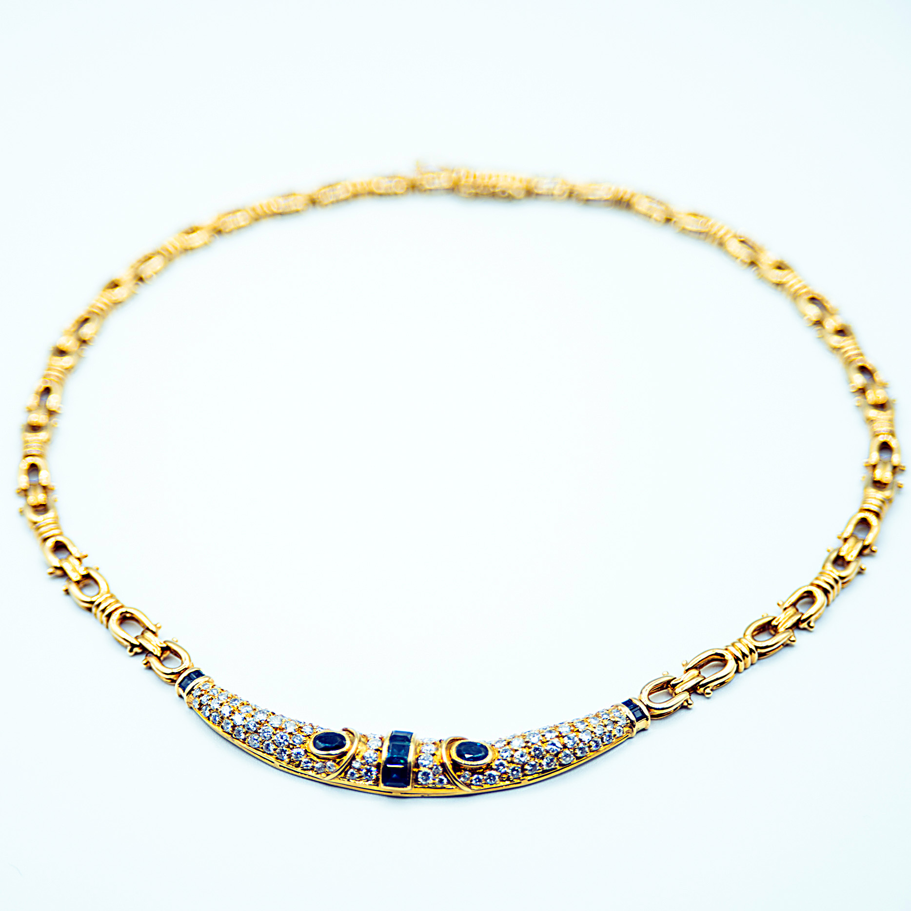 Gargantilla oro amarillo 18 quilates con diamantes y zafiro.