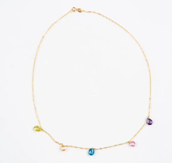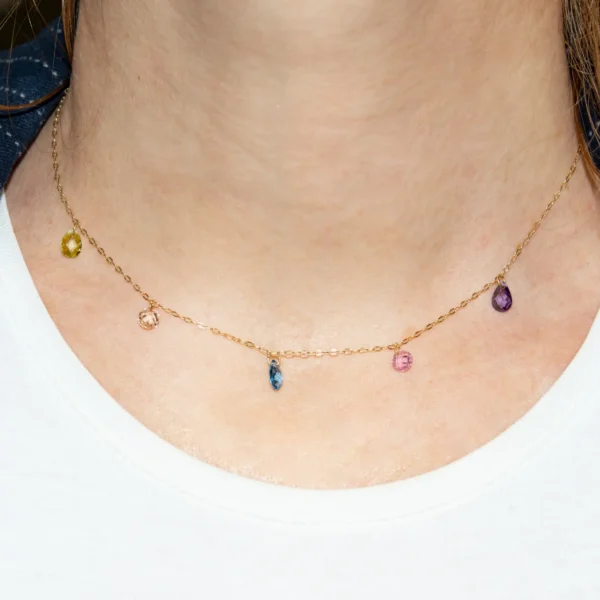 Gargantilla en oro amarillo con piedras de colores