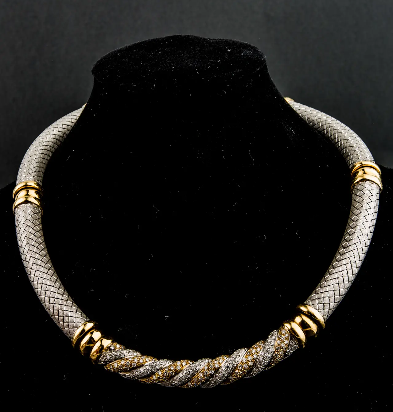 Gargantilla tubular bicolor con brillantes.