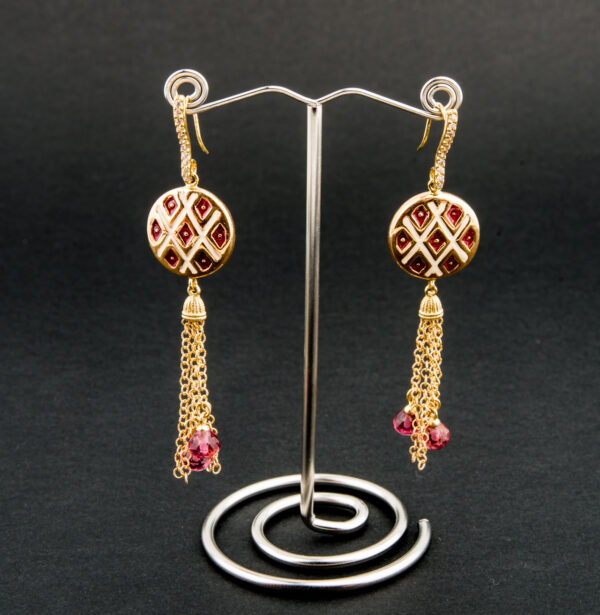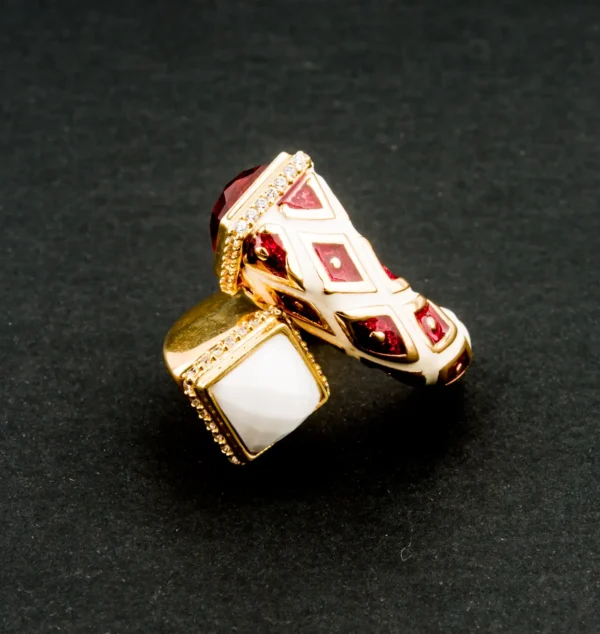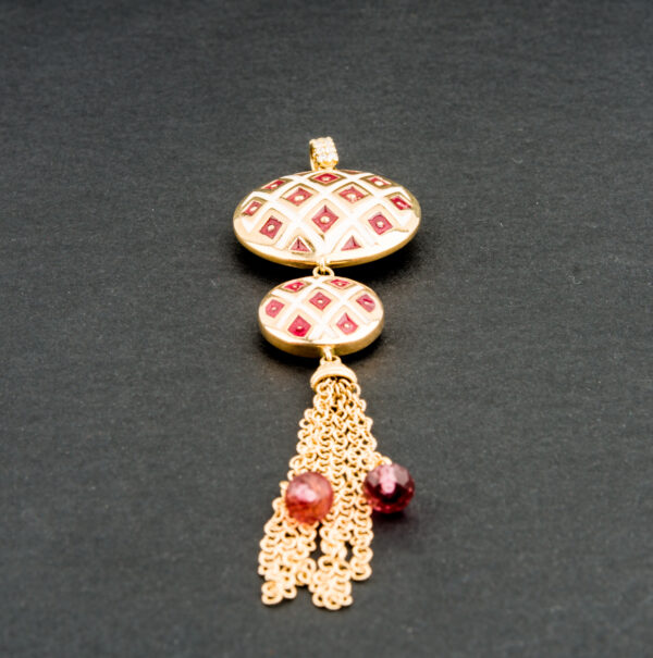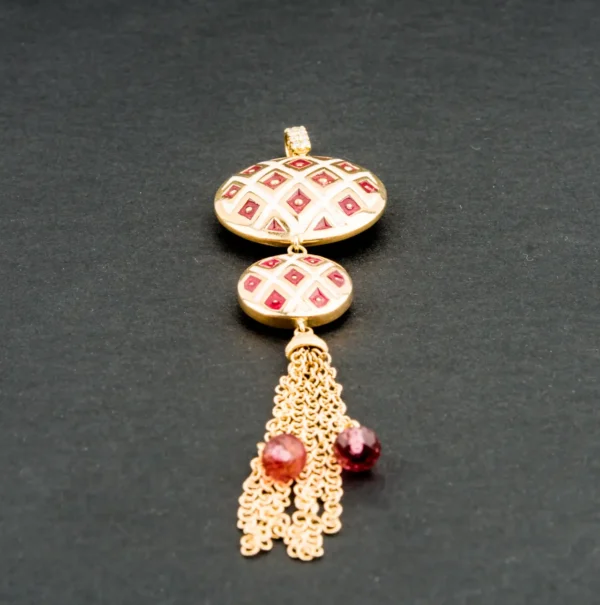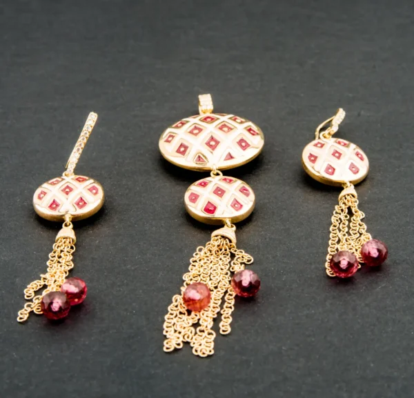 Juego de pulsera pendientes sortijas colgante de oro amarillo con esmalte y piedras