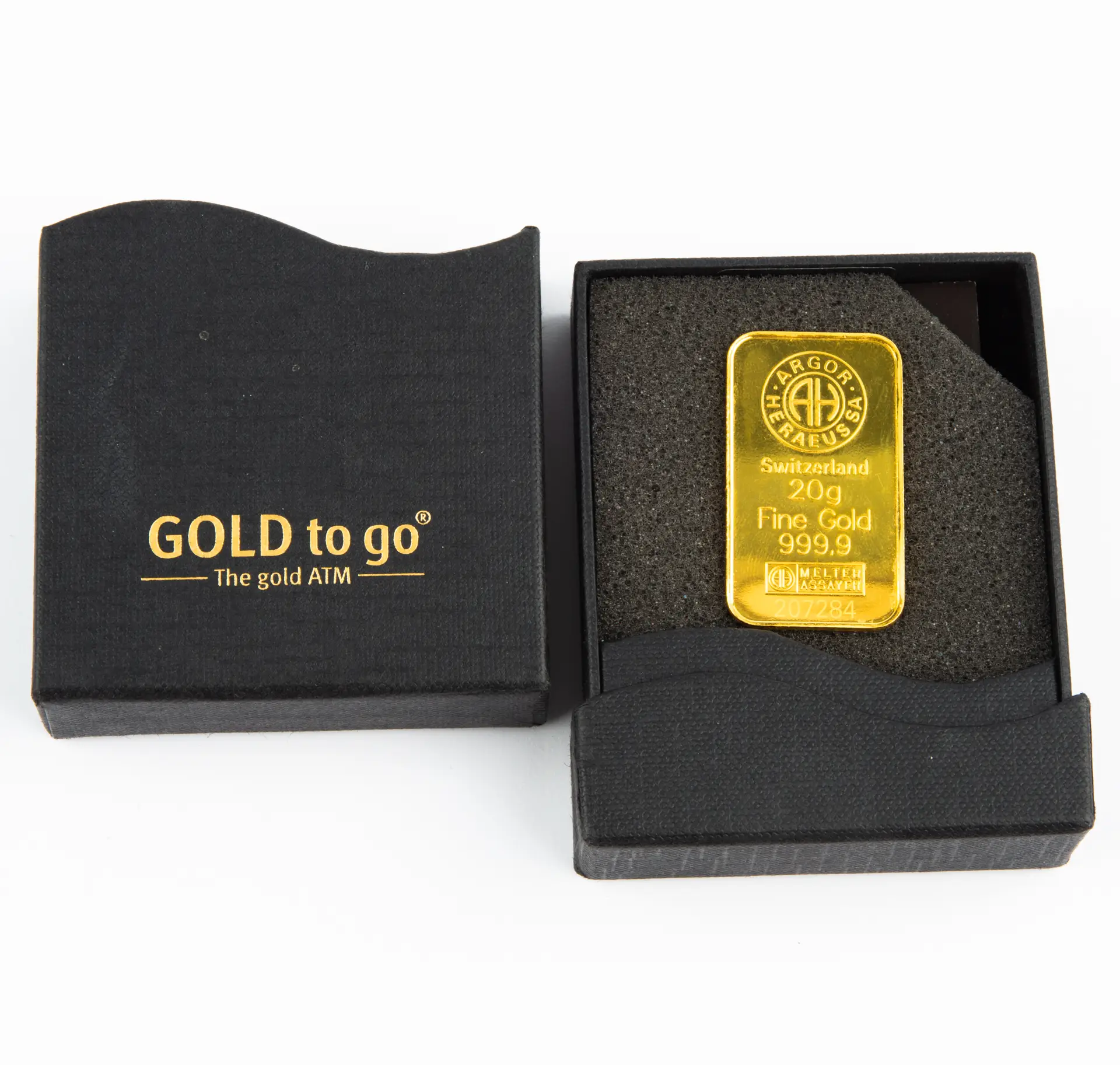 Estuche con Lingote de 20gr. de oro 999,9mm. Argor.