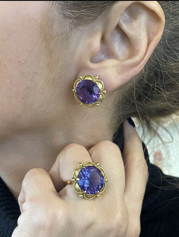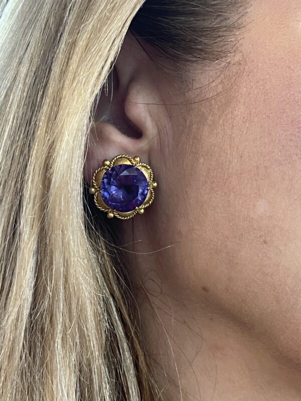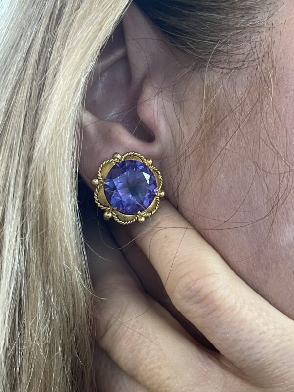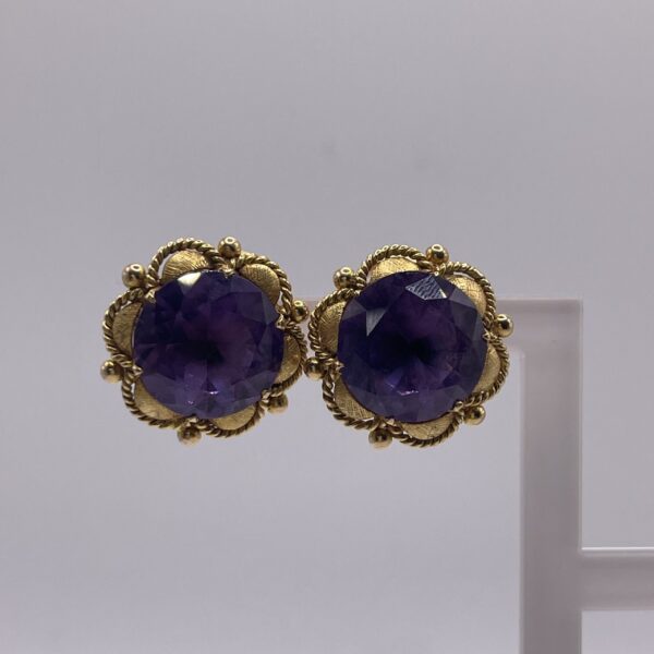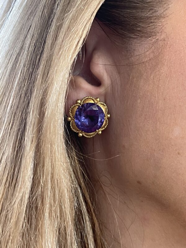 Pendientes vintage de oro 18Kt con amatista central y cierre omega.