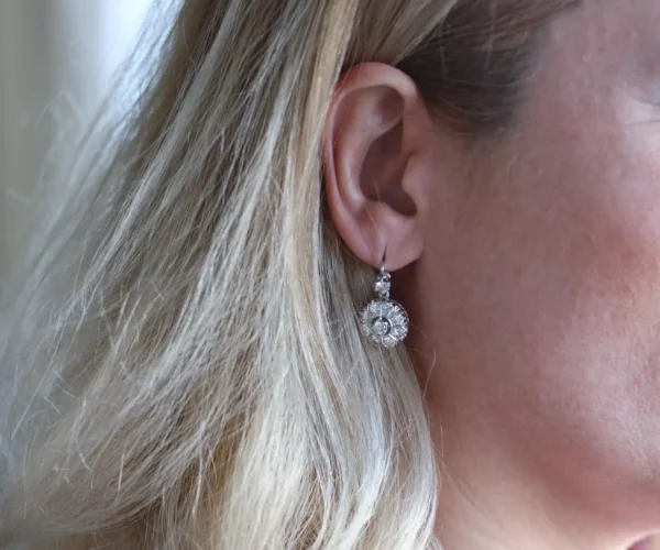 Pendientes antiguos de rosetón con diamantes