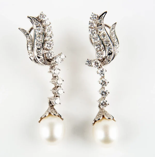 Pendientes de diamantes con perlas australianas.