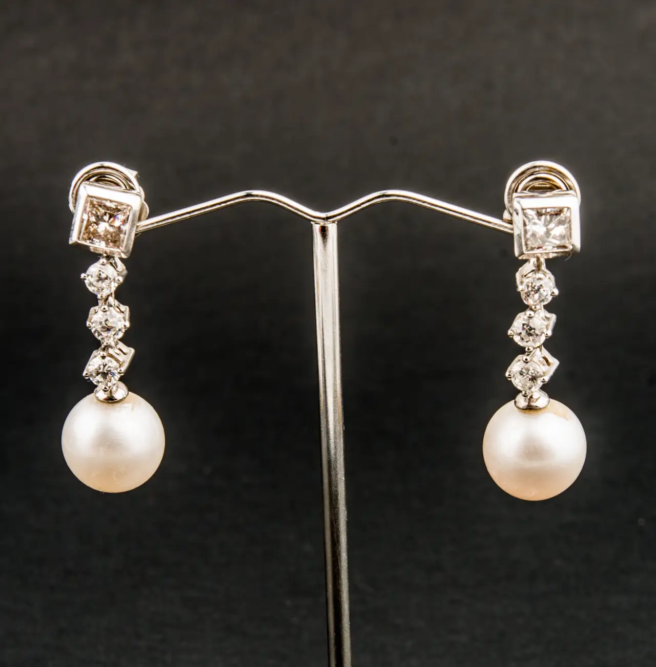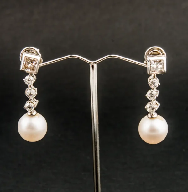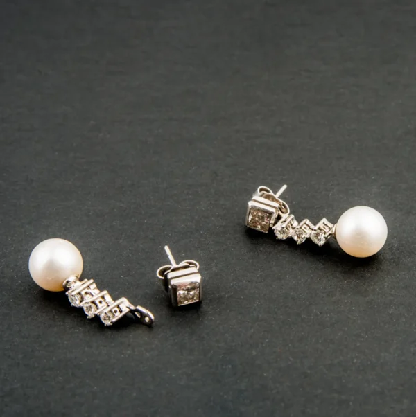 Pendientes de oro blanco con perla australiana y brillantes desmontables.