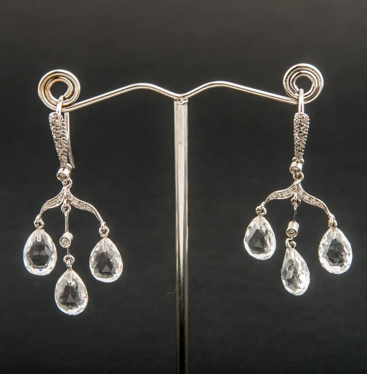 Pendientes largos de oro blanco con brillantes y cristales de fantasía