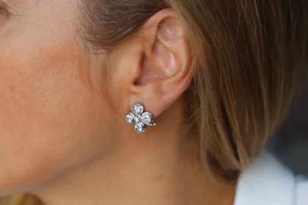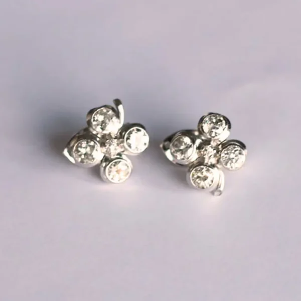 Par de pendientes trébol en oro blanco con diamantes.