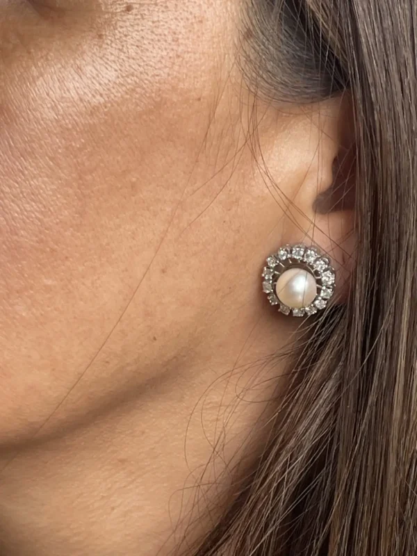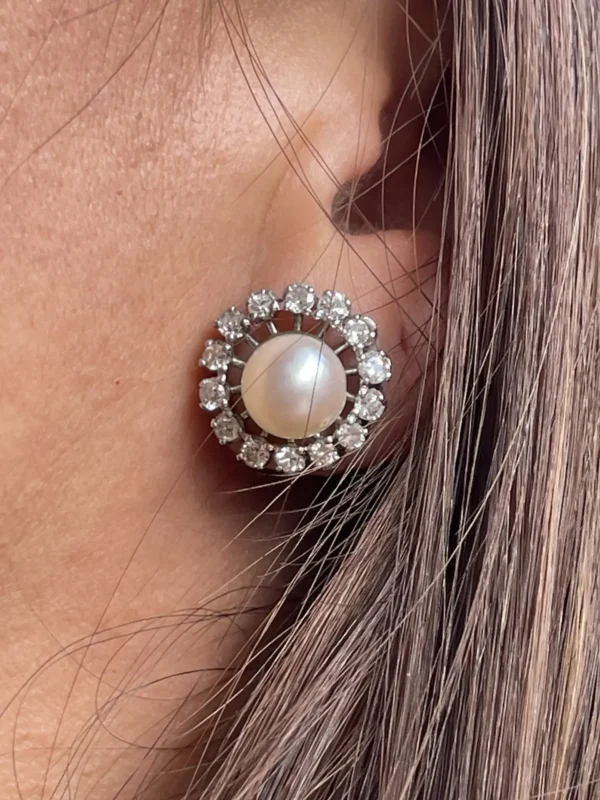 Pendientes vintage de perlas y diamantes