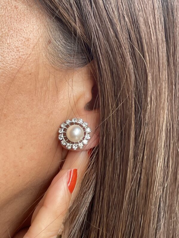 Cada pendiente está presidido por una perla natural, de superficie sedosa y brillo nacarado, que evoca la pureza y la armonía del mar. La perla central se encuentra delicadamente rodeada por un halo de diamantes blancos talla brillante, creando un resplandor envolvente que realza su luminosidad y aporta profundidad y carácter a la pieza.