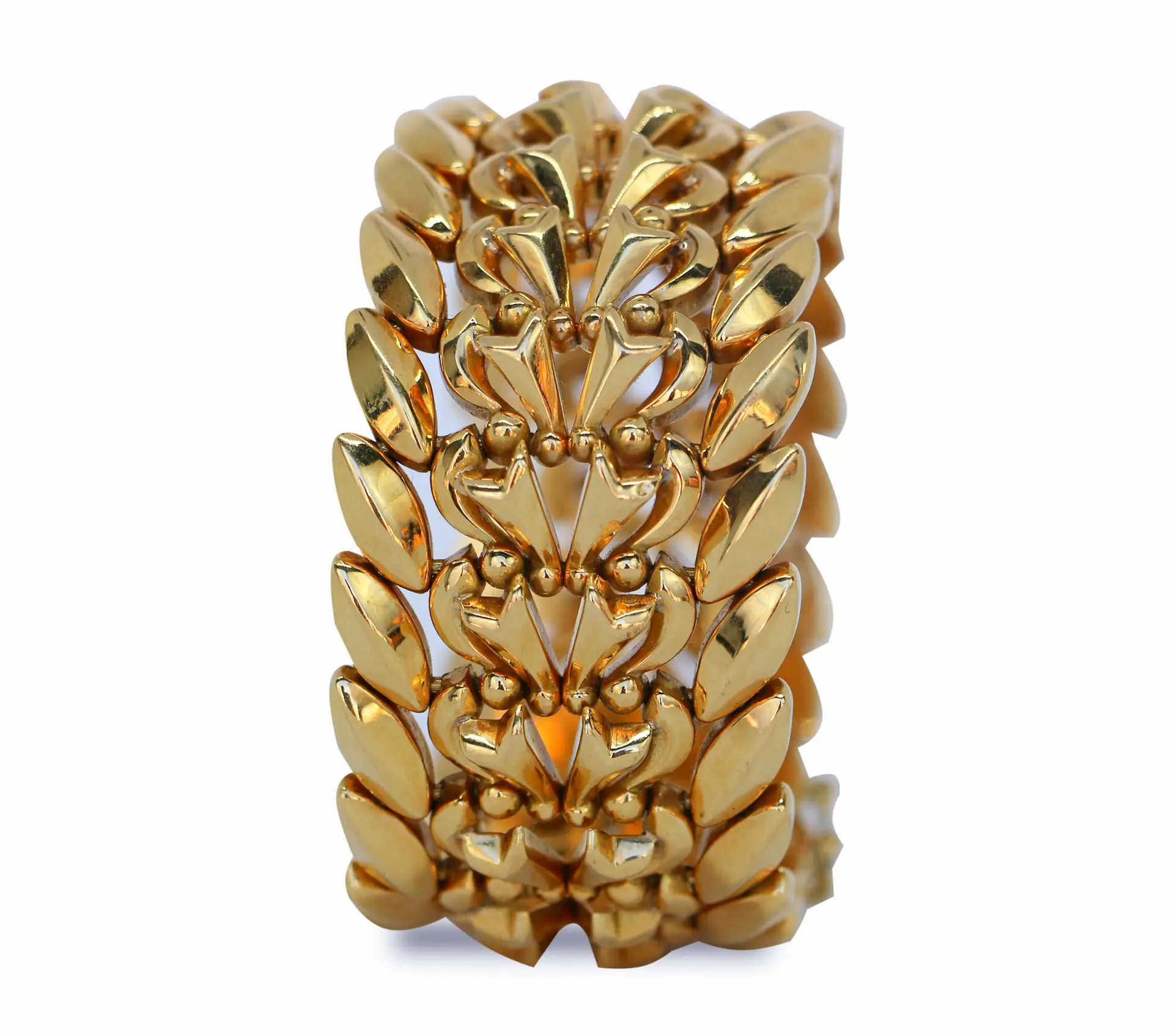 Pulsera antigua barroco ancha de oro amarillo.