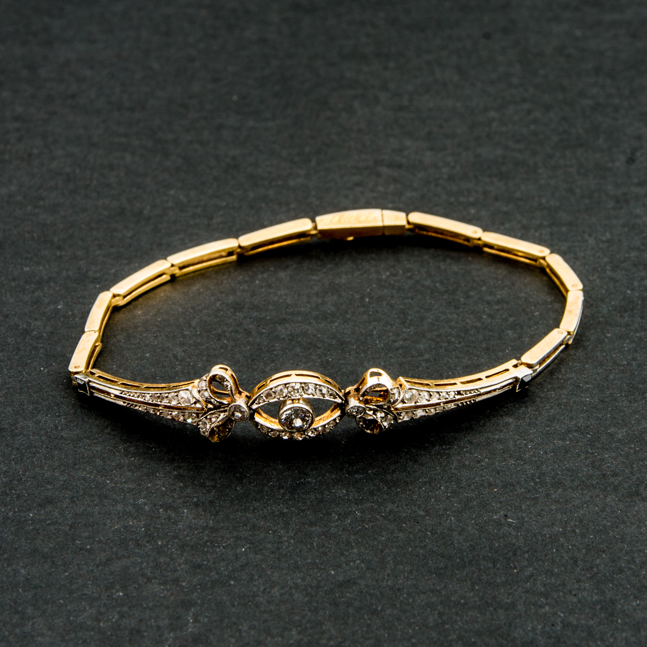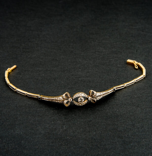 Pulsera antigua bicolor con brillantes.