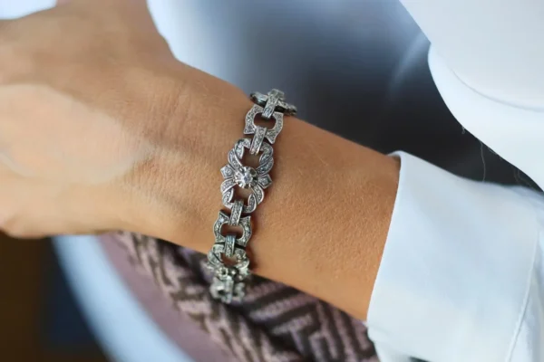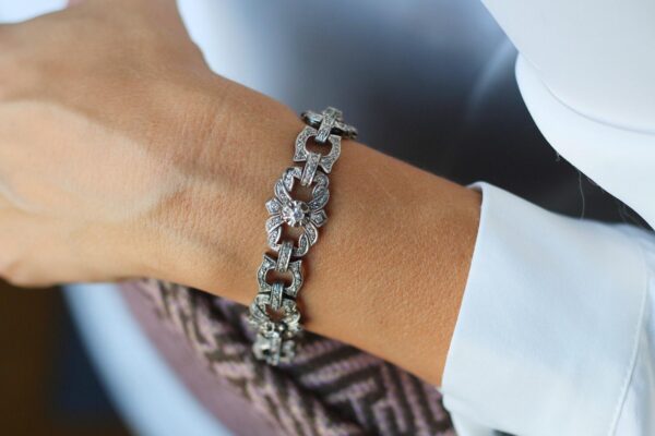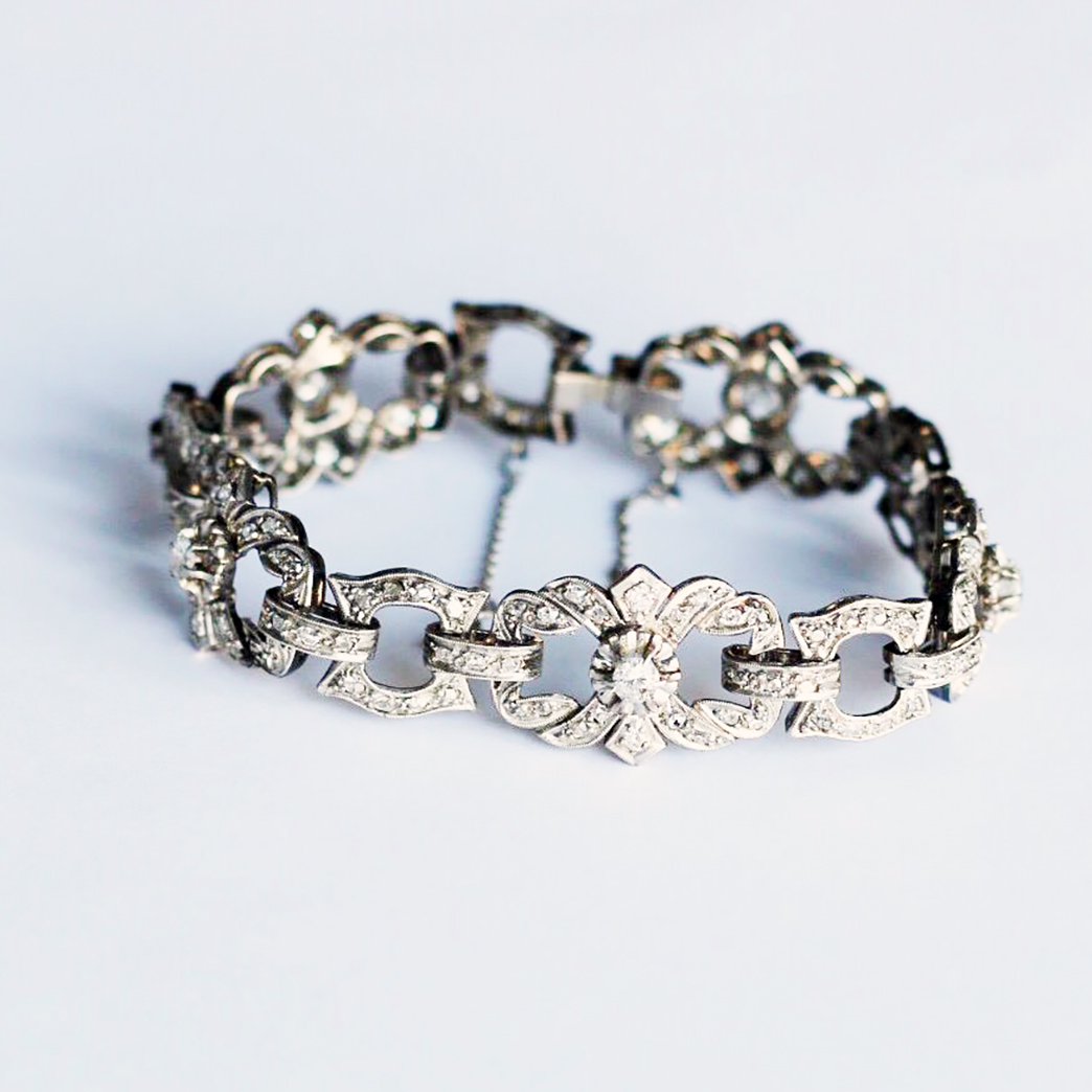 Pulsera antigua de oro blanco con diamantes.