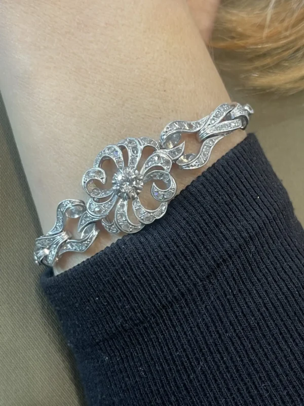 Ideal como joya de pedida, regalo conmemorativo o como pieza de colección, esta pulsera vintage de oro blanco y diamantes es perfecta para quienes buscan una joya con historia, carácter y valor duradero, capaz de trascender generaciones.