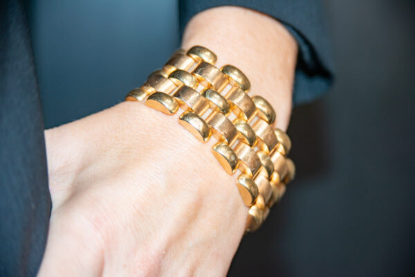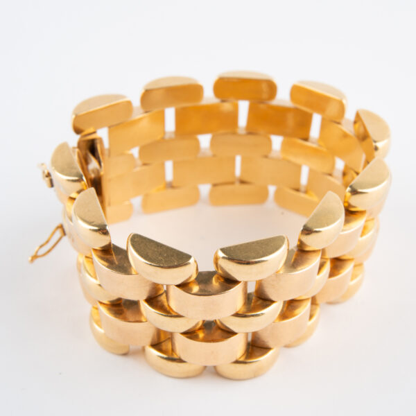 Pulsera Art Decó en oro amarillo 3 cm de ancho.