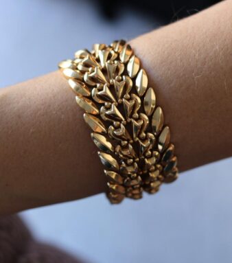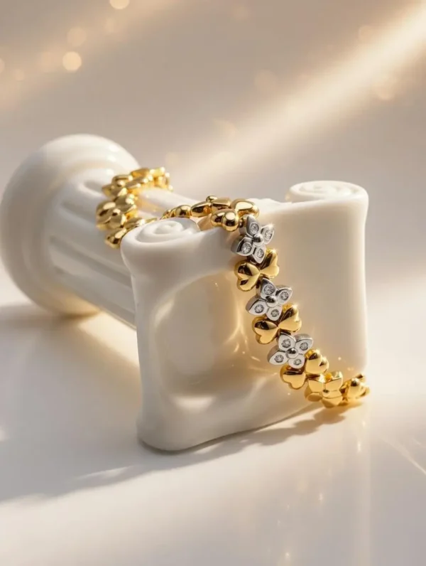 La combinación de dos tonos de oro aporta versatilidad, permitiendo que la pulsera combine fácilmente con otras joyas y estilos. Es una pieza ideal tanto para ocasiones especiales como para quienes desean llevar una joya elegante y exclusiva en su día a día.