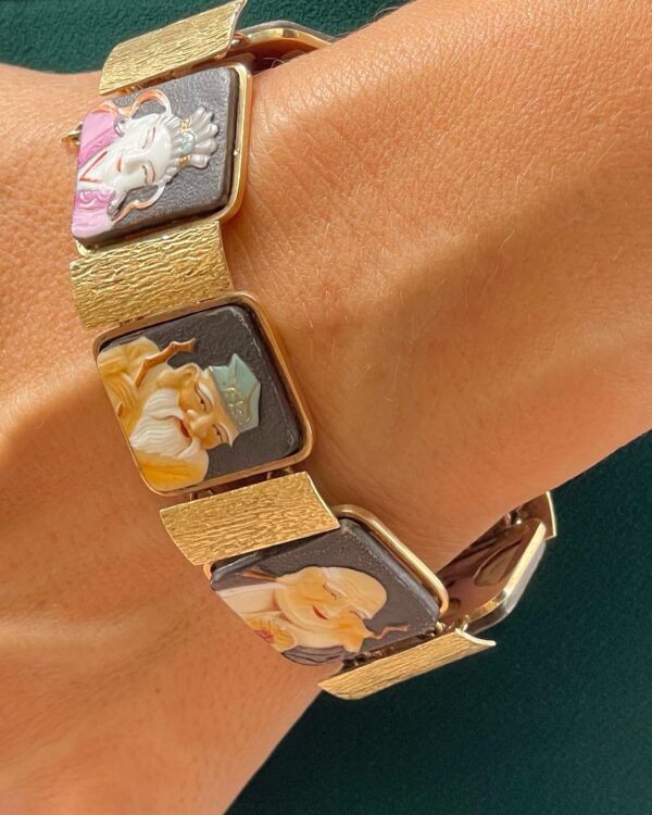 Esta pulsera de oro antigua de los siete chinos de la suerte es una joya excepcional cargada de simbolismo, tradición y misticismo, concebida como un amuleto de prosperidad, protección y armonía. Cada una de sus figuras representa valores asociados a la buena fortuna, convirtiendo la pieza en mucho más que una joya: un objeto con alma y significado.