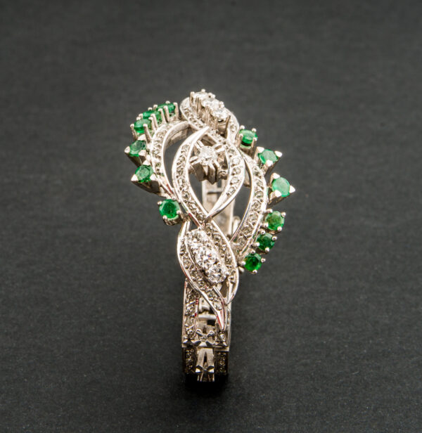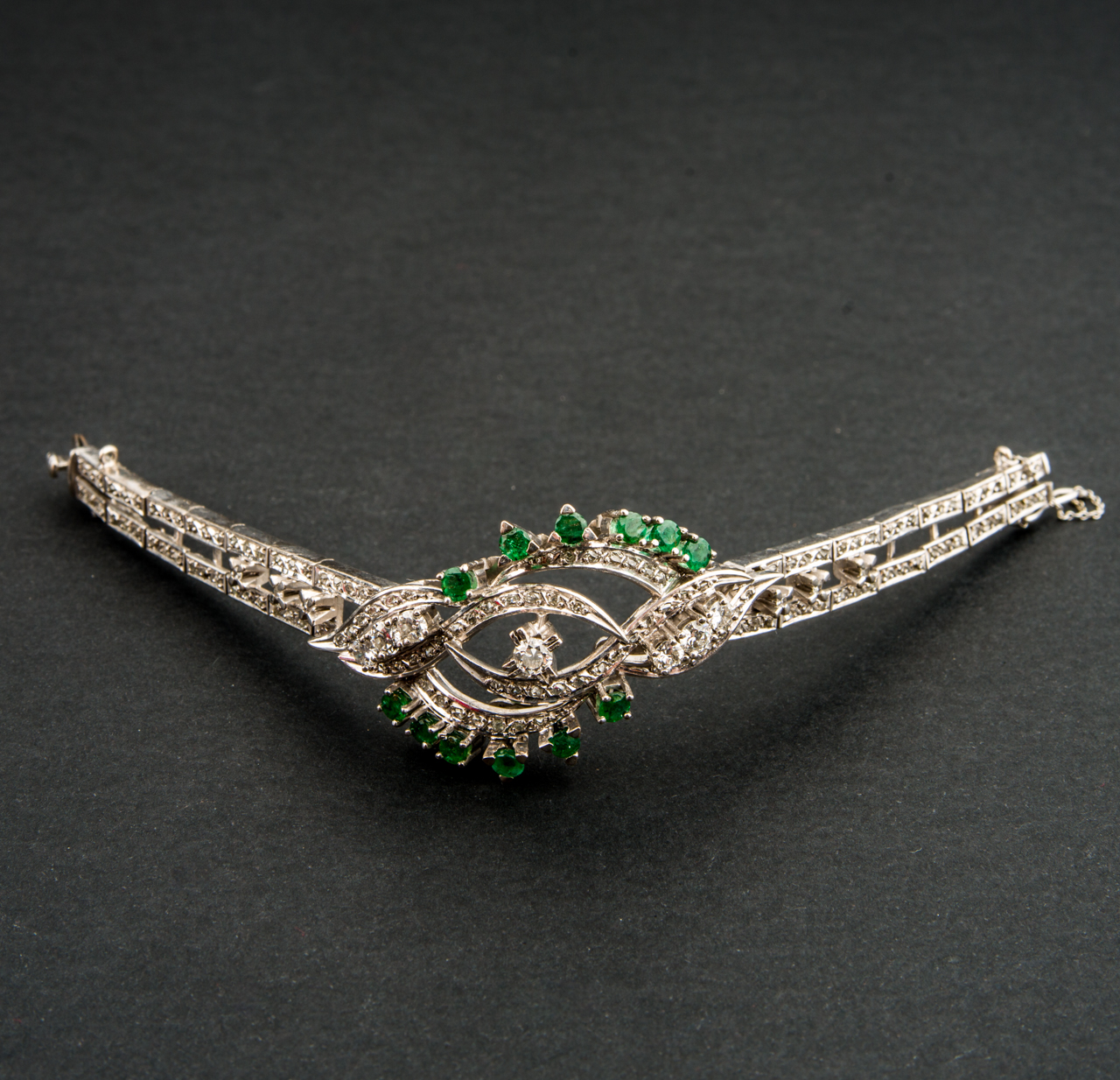 Pulsera de oro blanco con esmeraldas y brillantes.