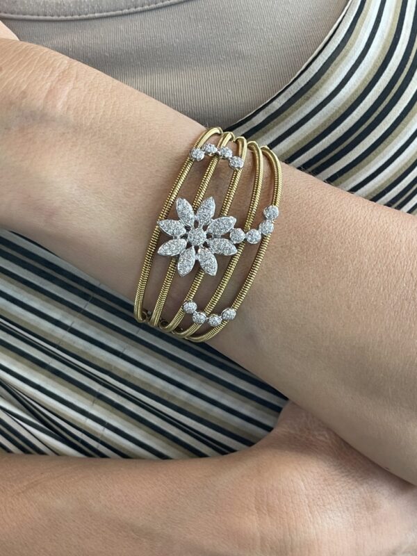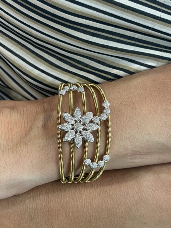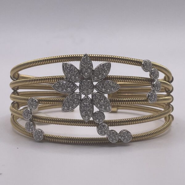 Pulsera de oro de 18kts con una flor y pétalos de diamantes.