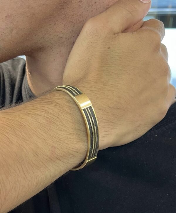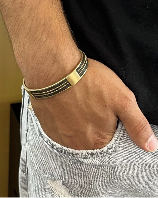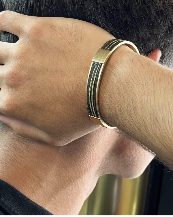 Esta pulsera de oro con pelo de elefante es una joya única que une tradición, simbolismo y fuerza. Elaborada de forma artesanal, combina la calidez del oro amarillo con la textura singular del pelo de elefante, un elemento históricamente asociado a la protección, la sabiduría y la conexión con la naturaleza.