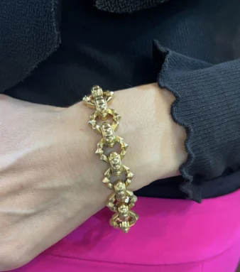Típica de las décadas de 1950 a 1960, esta pulsera antigua de oro con coral representa una época en la que el coral mediterráneo y el trabajo artesanal en oro eran protagonistas indiscutibles de la joyería de alta gama. Su diseño atemporal permite lucirla tanto en ocasiones especiales como integrada en estilos actuales, aportando siempre un toque de distinción clásica.