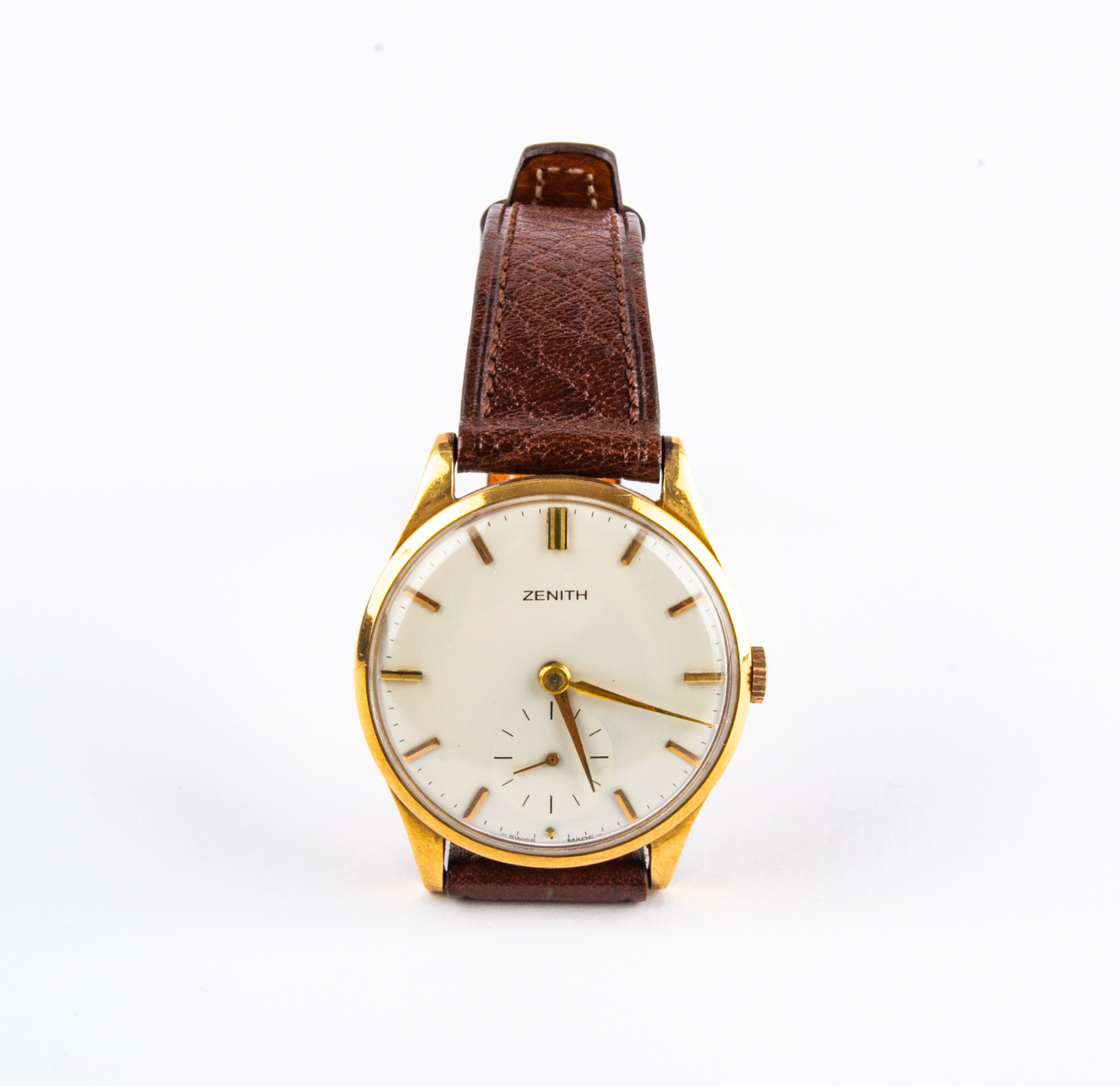 RELOJ VINTAGE ZENITH DE ORO AMARILLO CON MAQUINARIA DE CUERDA DE LOS AÑOS 60´ DE DIAMETRO 40 CON SEGUNDERO A LAS SEIS.
