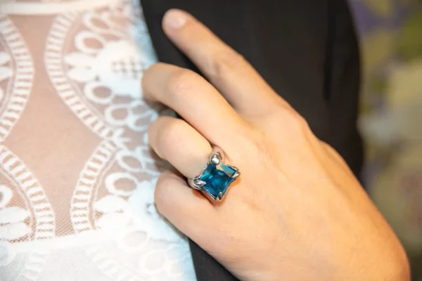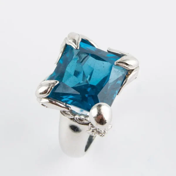 Sortija Carrera de oro blanco con topacio azul