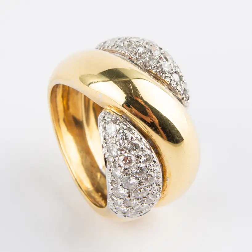 Sortija de oro amarillo con pavé de diamantes.
