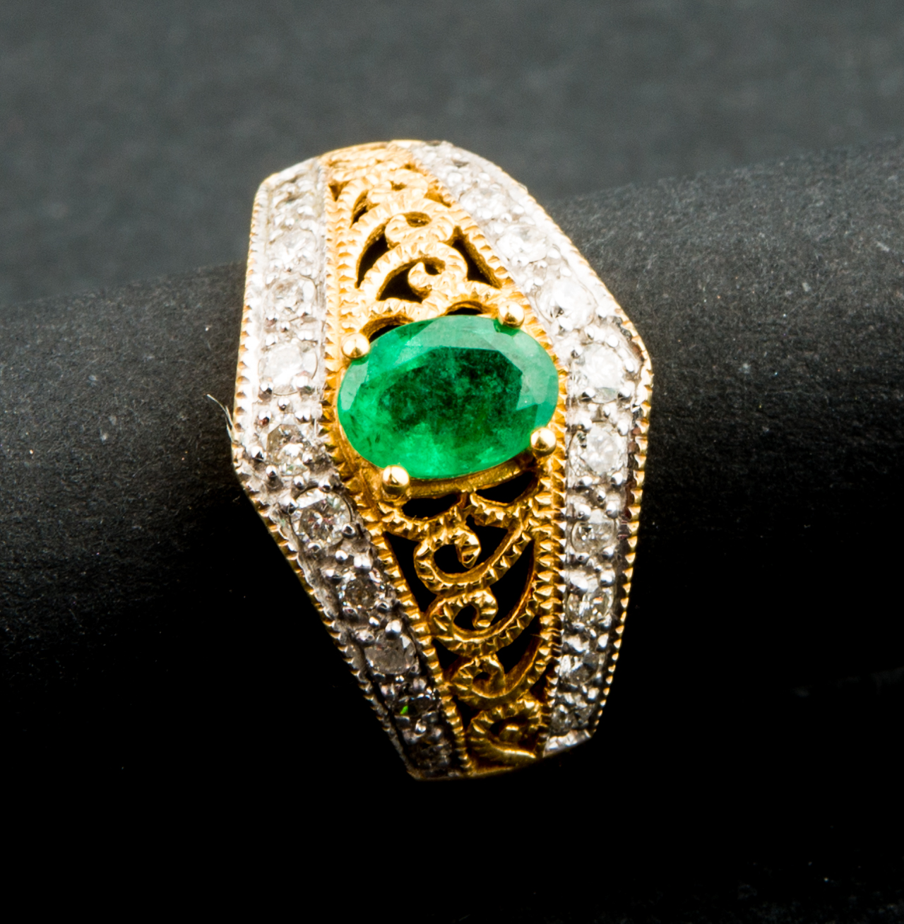 Sortija de oro amarillo con esmeralda y brillantes.