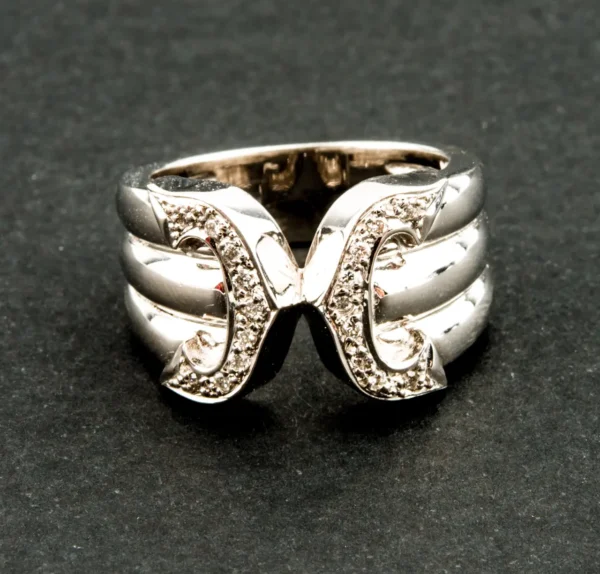 Sortija de oro blanco con brillantes.