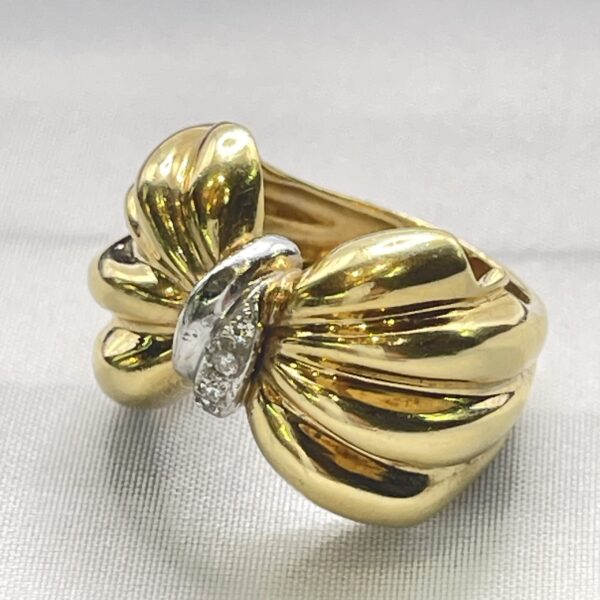 Sortija de oro amarillo 18 quilates con diamantes flor de Lis.