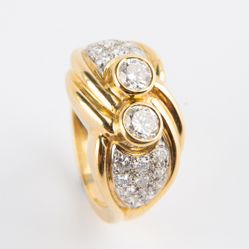 Sortija tu y yo con pavé de diamantes en oro amarillo.