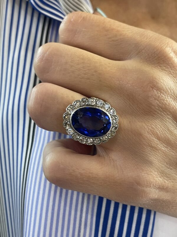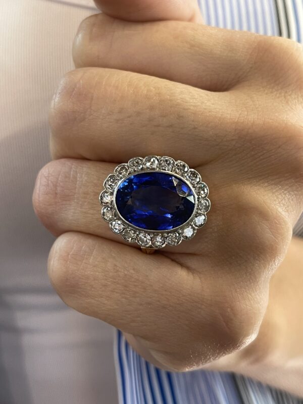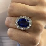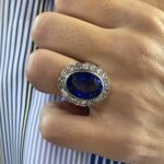 Increíble sortija de zafiro con diamantes, el zafiro simboliza lealtad y es la piedra de la sabiduría y los diamantes son símbolo de pureza, amor y perfección.